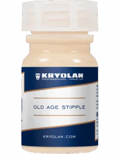 Old Age Stipple is a latex preparation for simulation of aged and wrinkled skin. Stretch the skin between thumb and index finger, and apply Old Age Stipple with a small latex sponge. Allow to dry; you can use a hair dryer to speed up drying. Then carefully apply powder. Repeat this procedure until the desired effect is achieved. For coloring, use Special Greasepaint for Rubber Items. For removal, Old Age Stipple can be peeled off the skin.